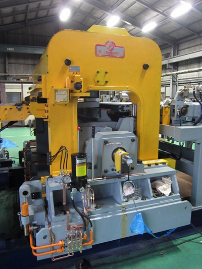 連続ライン(CGL、CAL、ACL)などでスクラップ処理及びサンプル材検出の為、出側にロータリー式出側シャーも行っております。