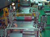 シャーラインと共にコイルセンターに於ける主要設備で取扱い鋼板(冷延鋼板、熱延鋼板、ステンレス) 0.15~6.0mm、板幅300~2,100mmまでの多条スリット加工を施します。